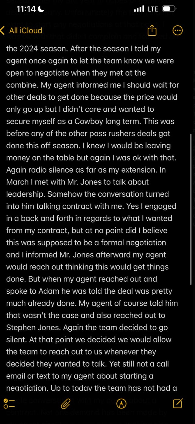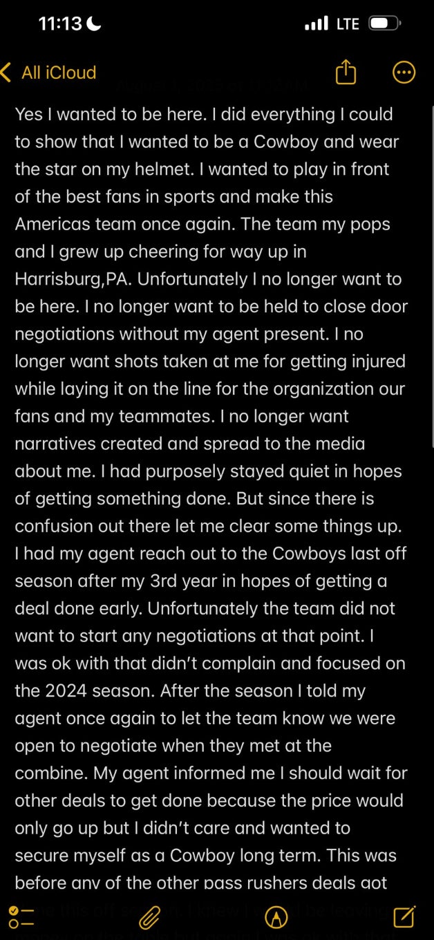 Micah Parsons Has Thanked Dallas And Notes App'd His Trade Request
