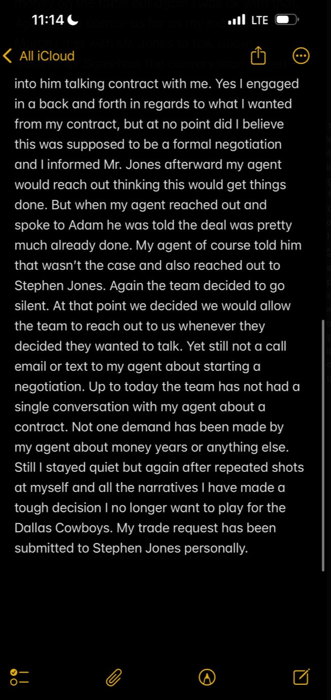Imagine being such a debacle of a franchise that you are in a public contract dispute with your star player to the point he demands a trade?!?! Only the Cowboys!!!!!