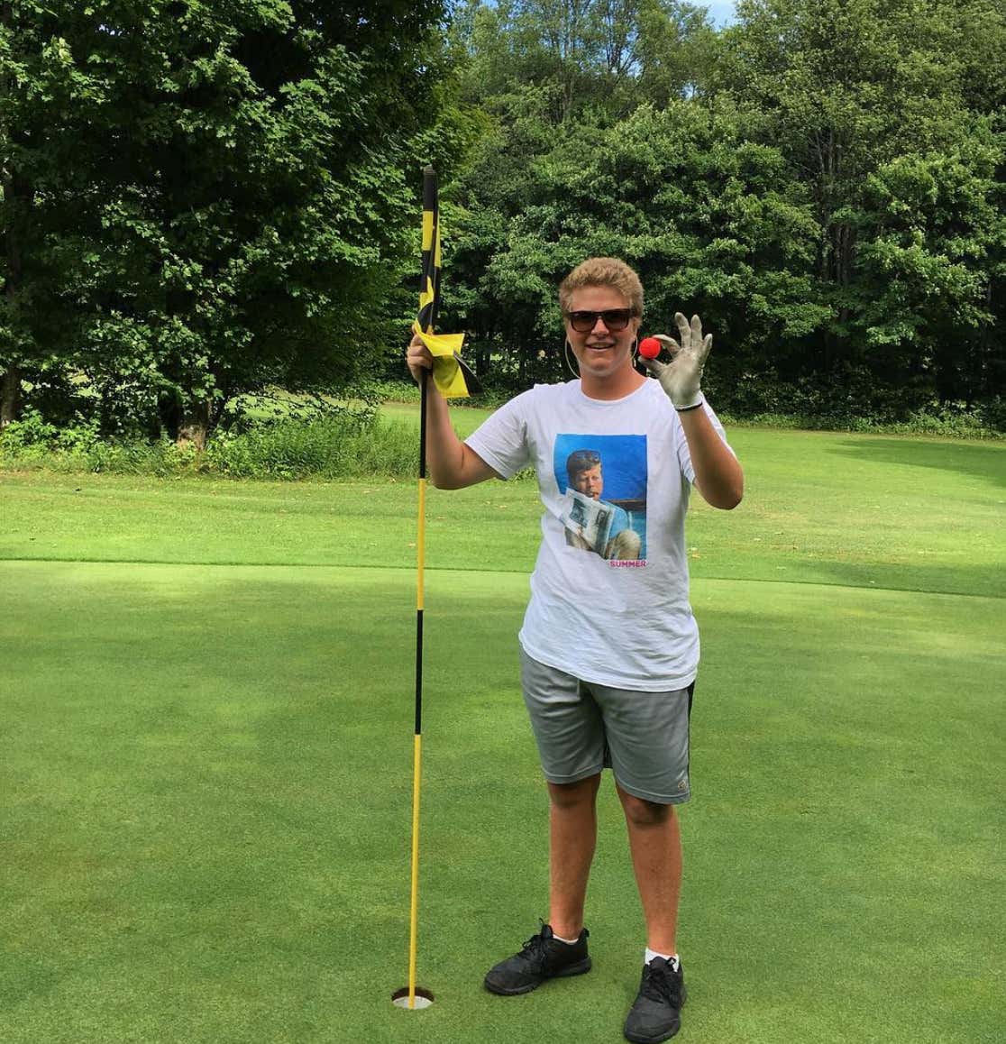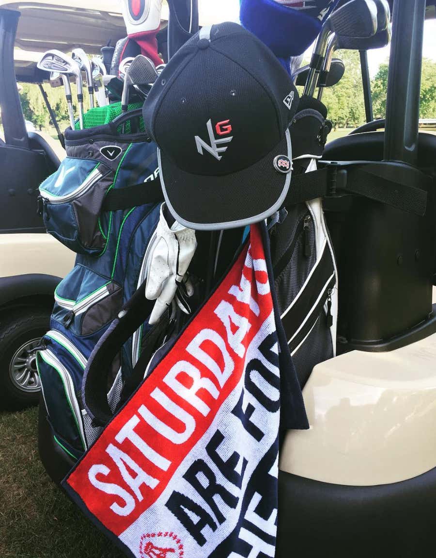 Only golf towel and polo you need, take it from a US Open champ