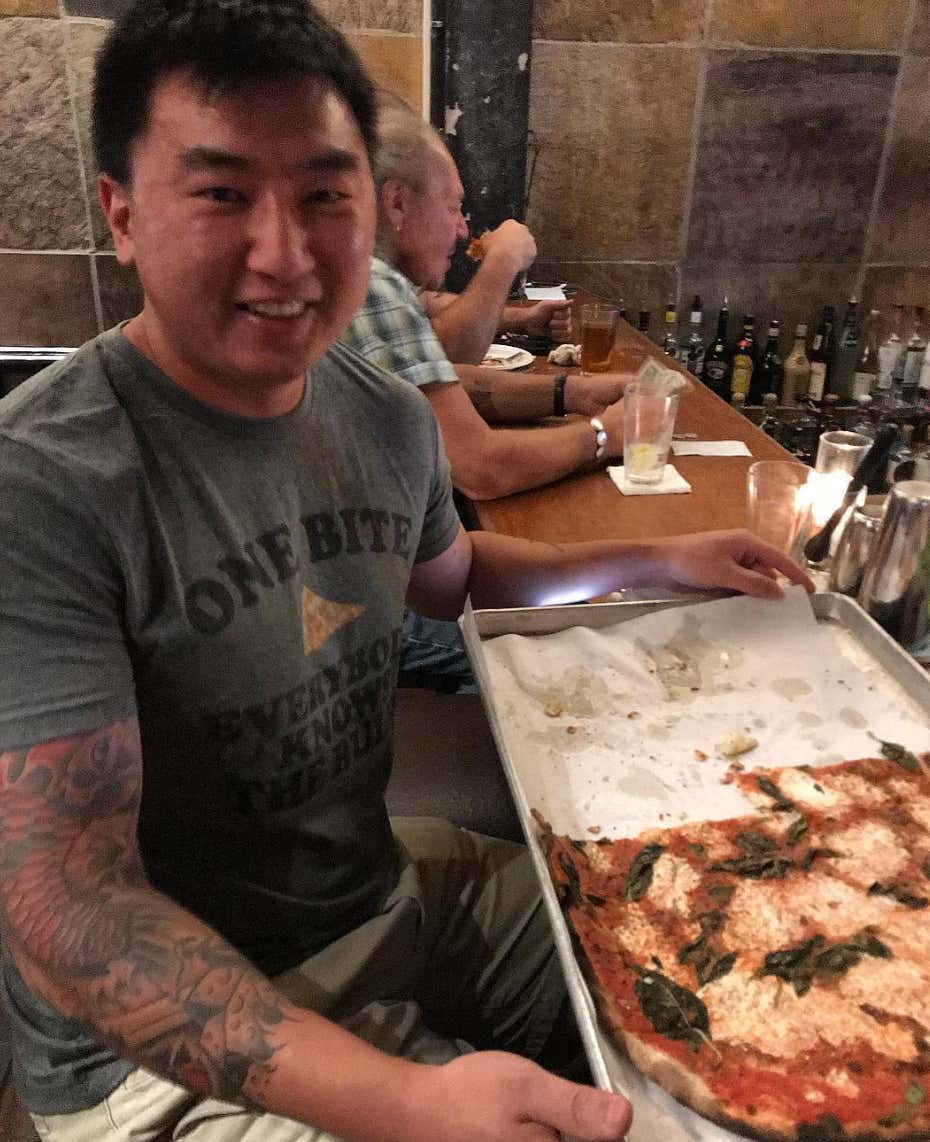 Great shirt. God awful looking pizza