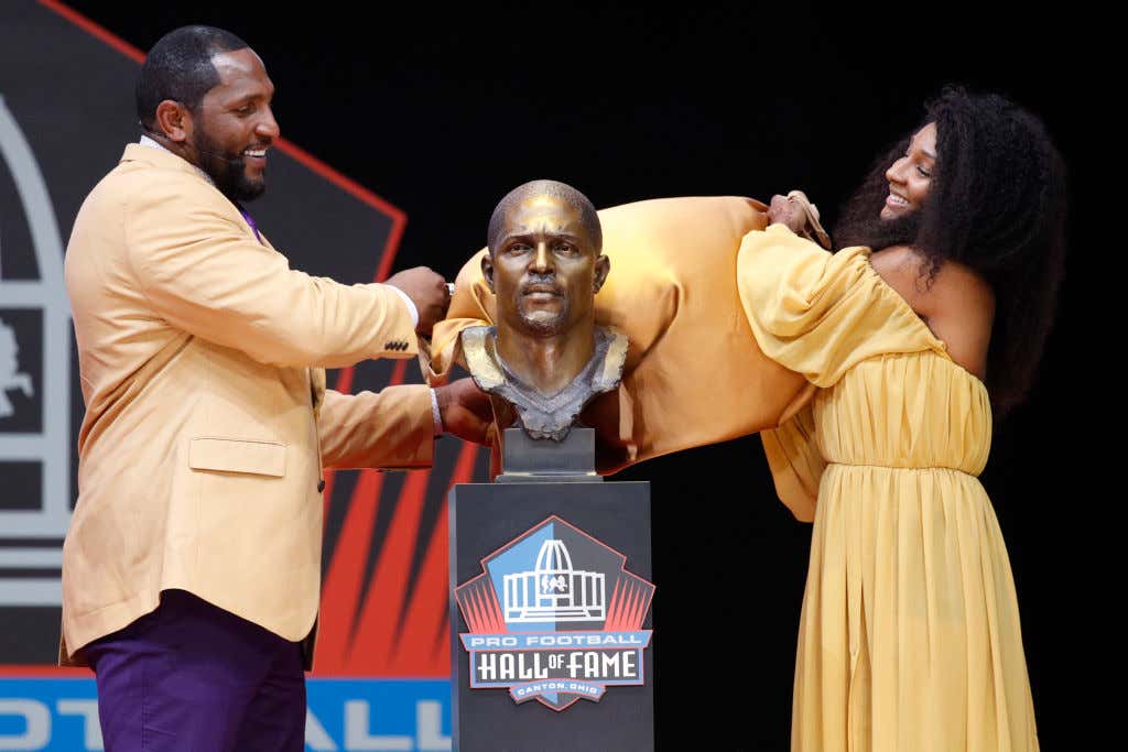 All of that, coupled with pacing back and forth across the stage and incomprehensible ramblings, took 33 minutes and change. But you know what? It doesn’t even matter because that was Ray Lewis’s time to shine. That was the moment he played for his entire career. That was the moment his very own bust that looks absolutely nothing like him in any way shape or form would go into the history books, to be remembered forever.