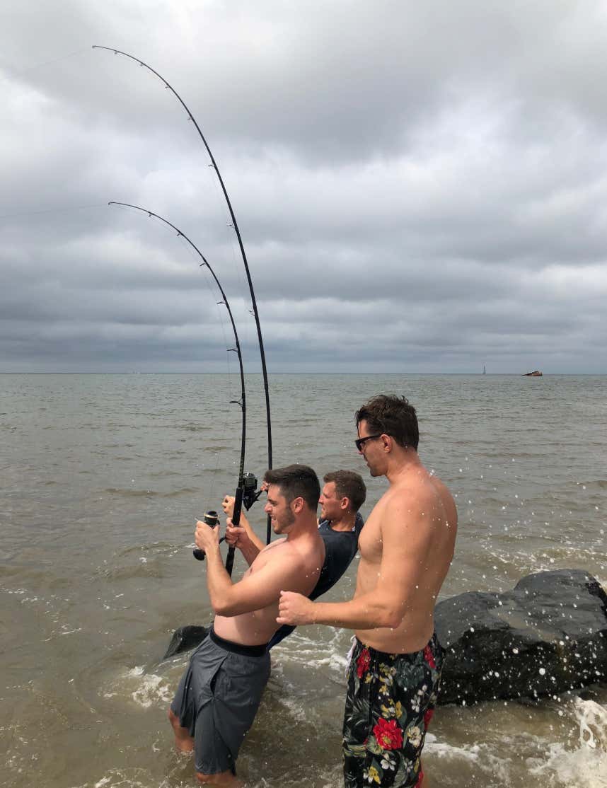 Immediately upon casting our lines and getting our rods firmly planted in the sand, I noticed a pod of dolphins swimming 50 yards off the beach. It was the first time on the entire trip that I found myself in touch with nature. Watching them gracefully bob and weave through the waves helped me forget about the terrors of the previous night. It was beautiful.
