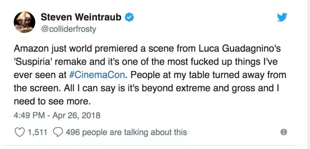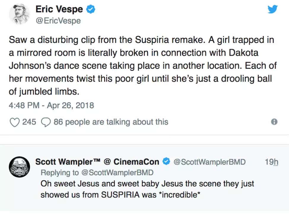 "Suspiria" Trailer Drops - Yes, The Movie That Made Critics Cry and Puke All Over The Theater