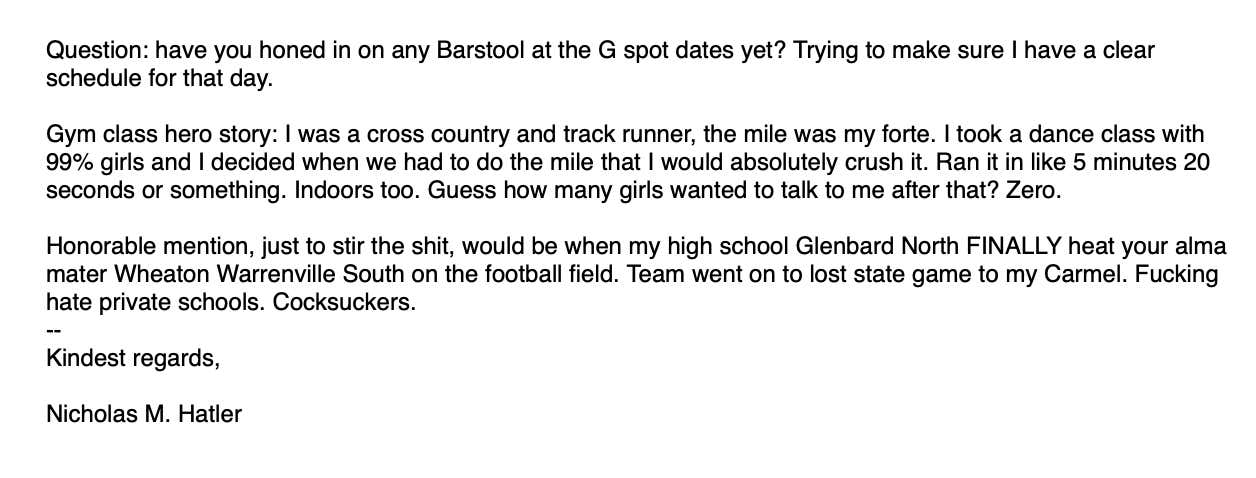 The reason I mention all of this is because while HS football ends, HS stories last forever. And whoever #50 and #45 are on Nazareth are going to tell the story of how they fucked up this kid on Mt. Carmel for LIFE.
