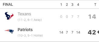 However after last week, this is currently what everyone thinks of when you mention the Texans and Patriots in the same sentence.