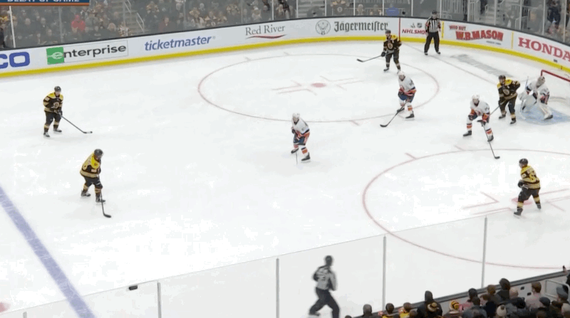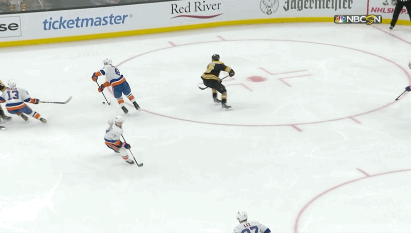 Anders Bjork opened the scoring with an absolute snipe, but Charlie Coyle is the one who made it happen. Great poke check and Bjork has his 5th of the season. 1-0 Bruins. A whopping 7 shots on goal in the 1st period between the two teams (4-3 advantage to the Islanders).