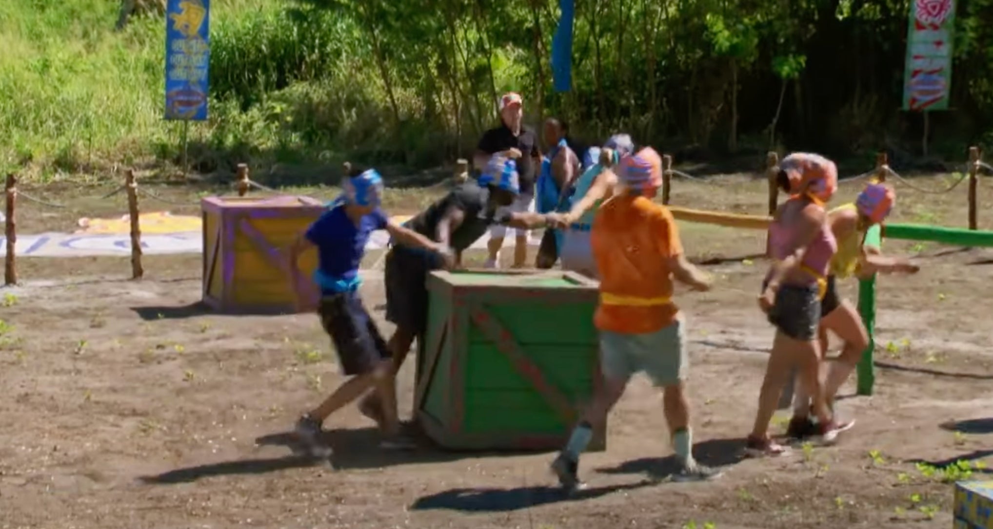 -This is a classic Survivor challenge with the caller directing a bunch of blind folded idiots. Jonathan, Drea, and Lydia were the callers for their respective tribes. Both roles seem miserable here. I have a steadfast rule of never volunteering for a solo role in a team challenge (this, puzzles, basketball shooter, etc). Don't want the spotlight in case you fuck up. But being blindfolded and maybe banging your head and bleeding also seems not fun.