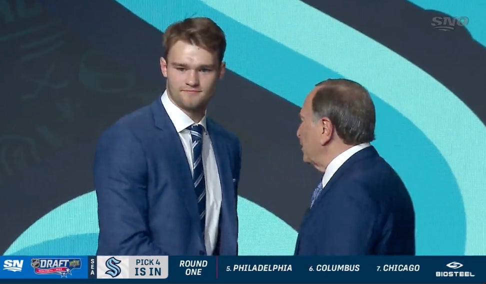 Sidenote: From one extreme draft reaction to another, you had the death stare from Shane Wright followed up by the conception smooch from Maveric Lamoureux's parents.