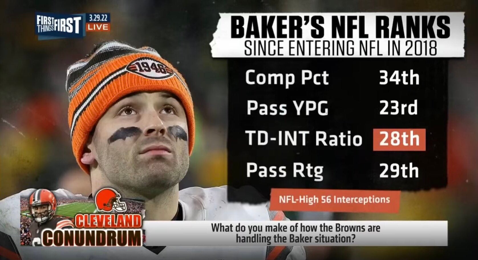 I just hope Myles Garrett and Jadeveon Clowney help him up after each sack instead of tea-bagging him. Because I do like Baker, I really do. But until he realizes that every single thing he says is going to blow up in the media, whether it's taken out of context or not, he's always going to be too much bark and not enough bite.