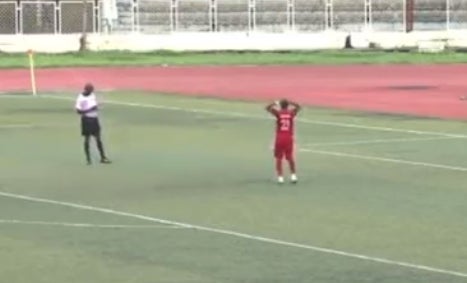 This guy's hands are clearly on his head, which is the universal sign of disbelief whether you are playing soccer in Nigeria or watching college football in Texas.