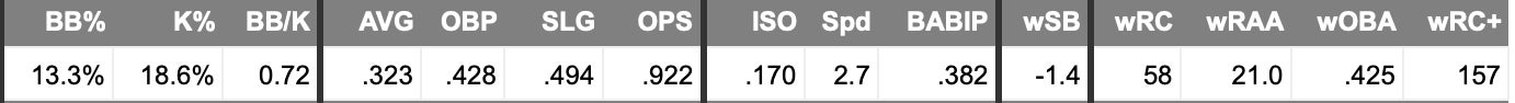 Not too shabby a start if I do say so myself! Oh, and he's currently riding a 50 game on base streak: