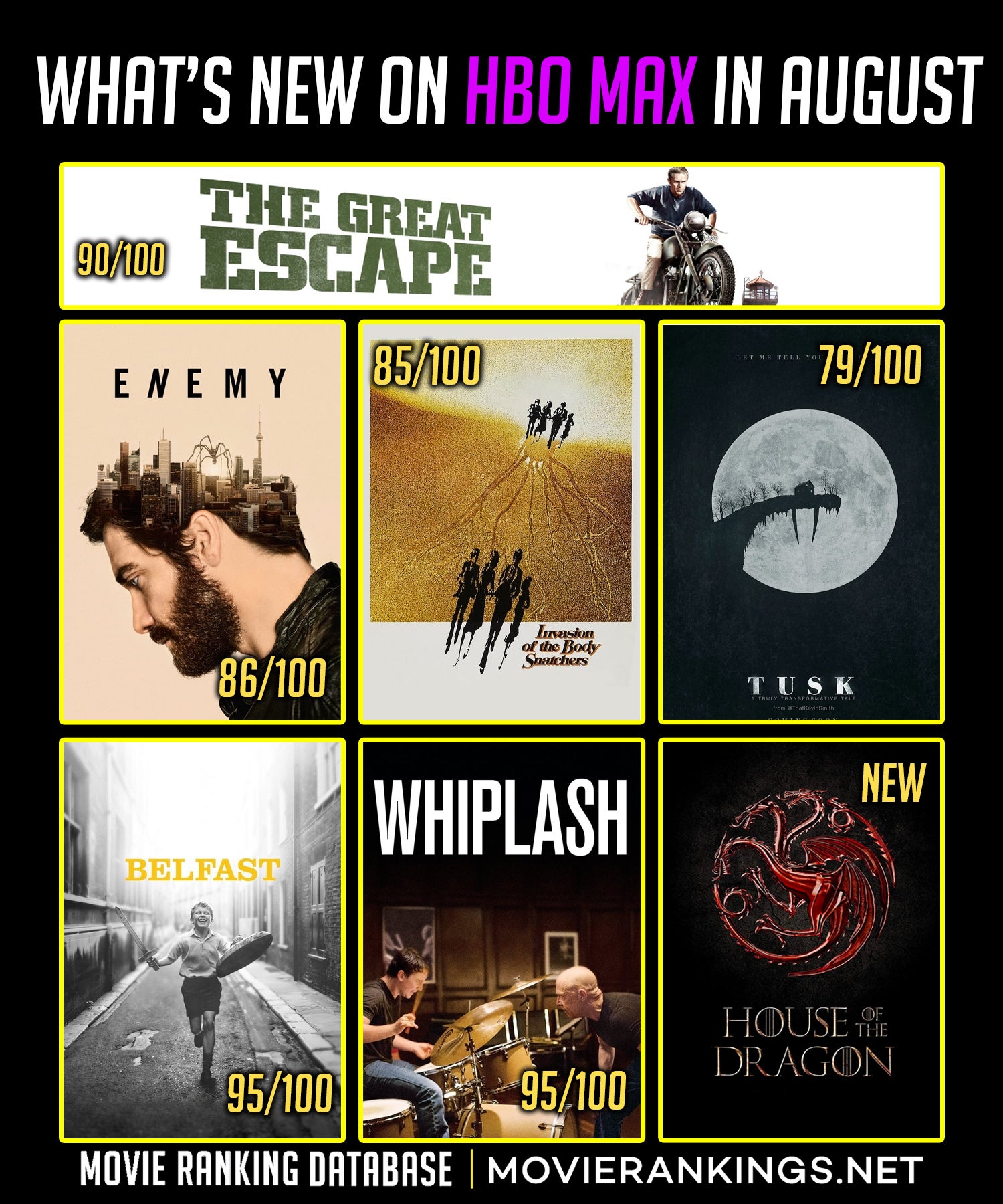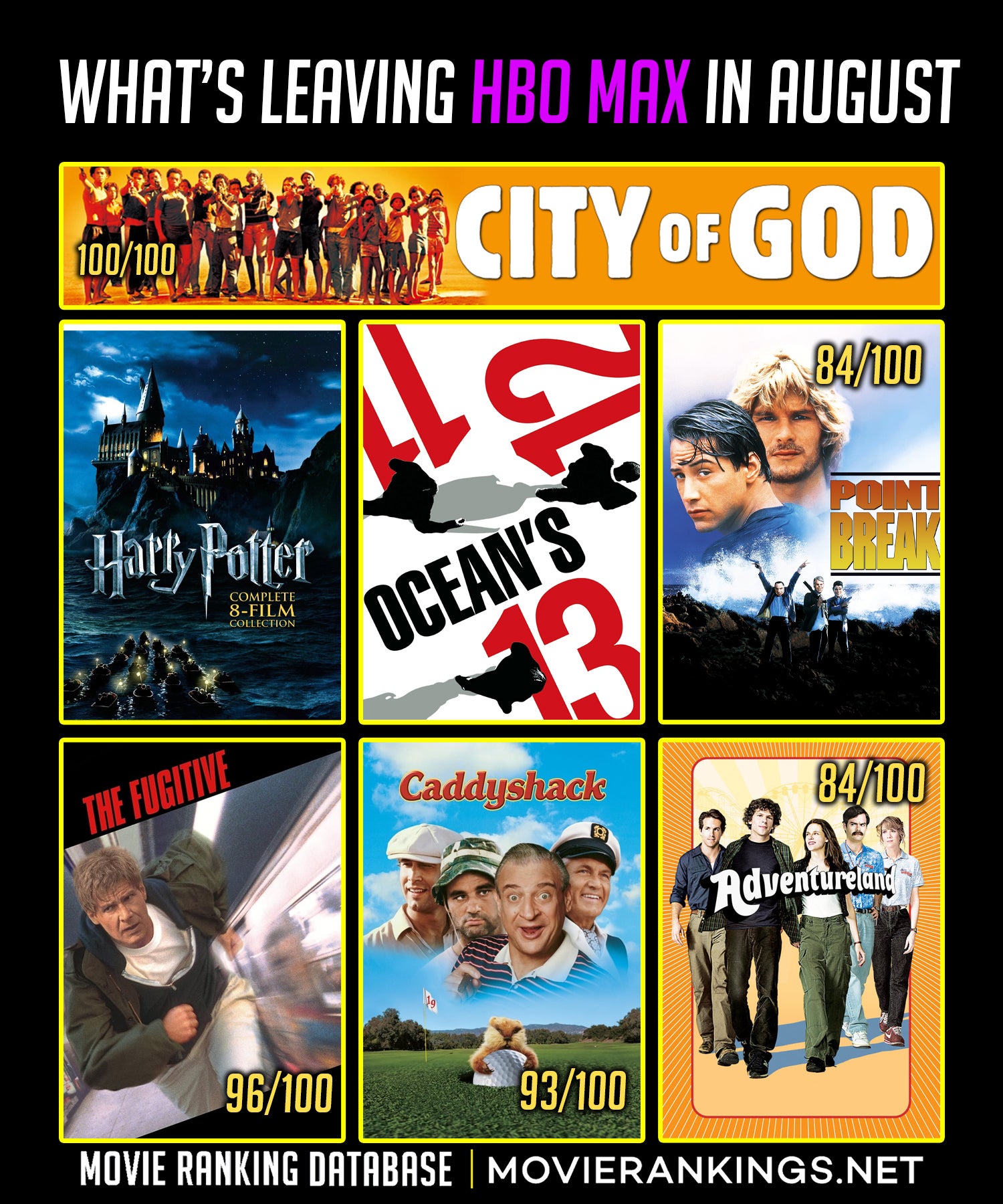 August 31st: 17 Again, A Cinderella Story, Adventureland, Alex Cross, Batman Begins, Beetlejuice, Broadcast News, Bronson, Caddyshack, City of God, Cold Mountain, Deep Blue Sea, Defiance, Dog Day Afternoon, Dumb & Dumber, Final Destination, Fools Gold, Gran Torino, Grumpy Old Men, All the Harry Potter Movies, Horrible Bosses, Lean on me, Mystic River, the 3 Oceans Movies, Point Break, Space Jam, Starship Troopers, The Fugitive, The Mask, The Outlaw Josey Wales, The Pelican Brief, The Raid 2, The Town, Underworld, Unforgiven, Vanilla Sky, Wall Street, We Are Marshall