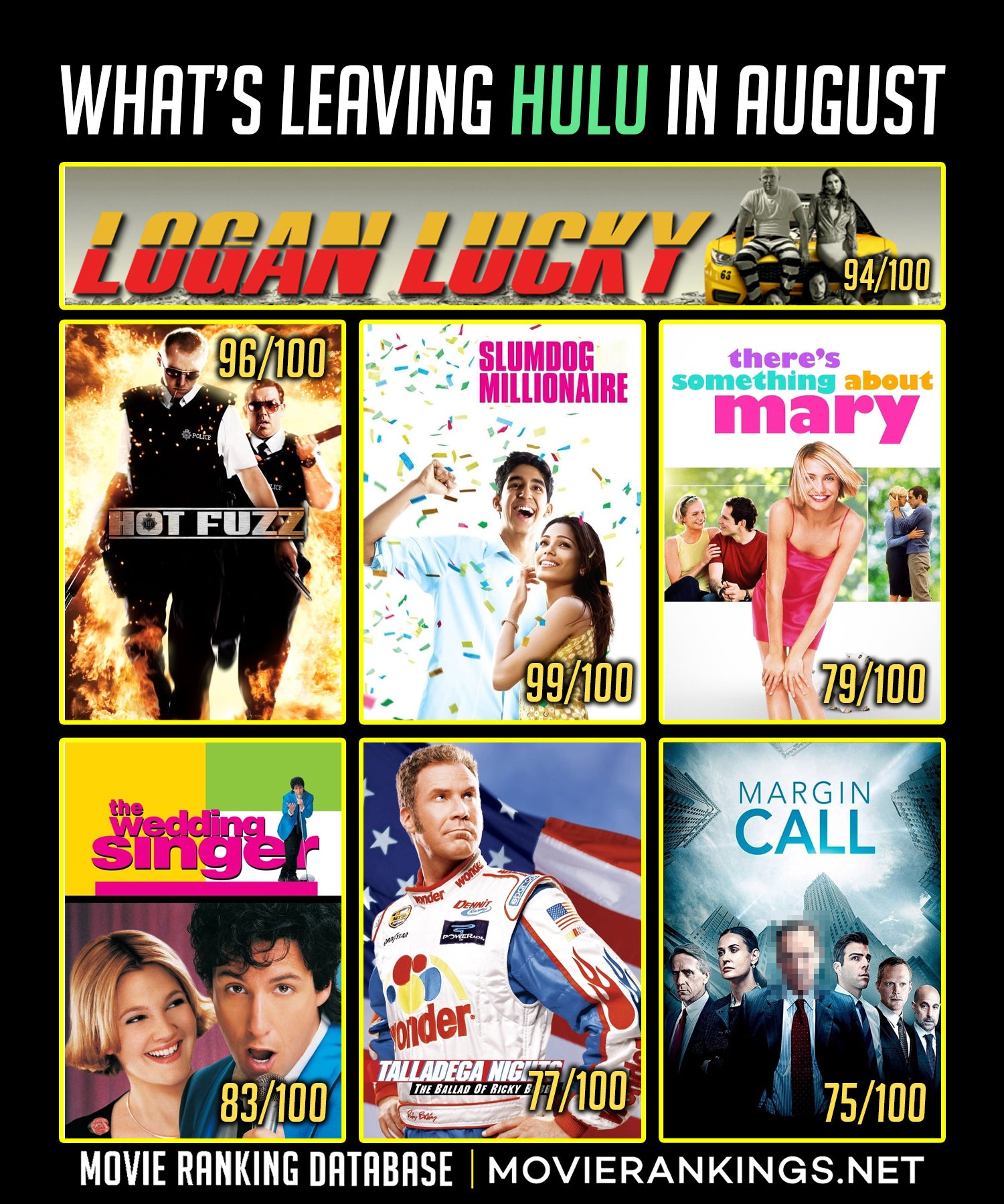 August 31st: 30 Minutes or Less, The American,Blazing Saddles,Demolition Man, The Expendables, Hot Fuzz, Insidious, Margin Call, Slumdog Millionaire, Taken, Talladega Nights, There's Something About Mary, Unstoppable, The Wedding Singer
