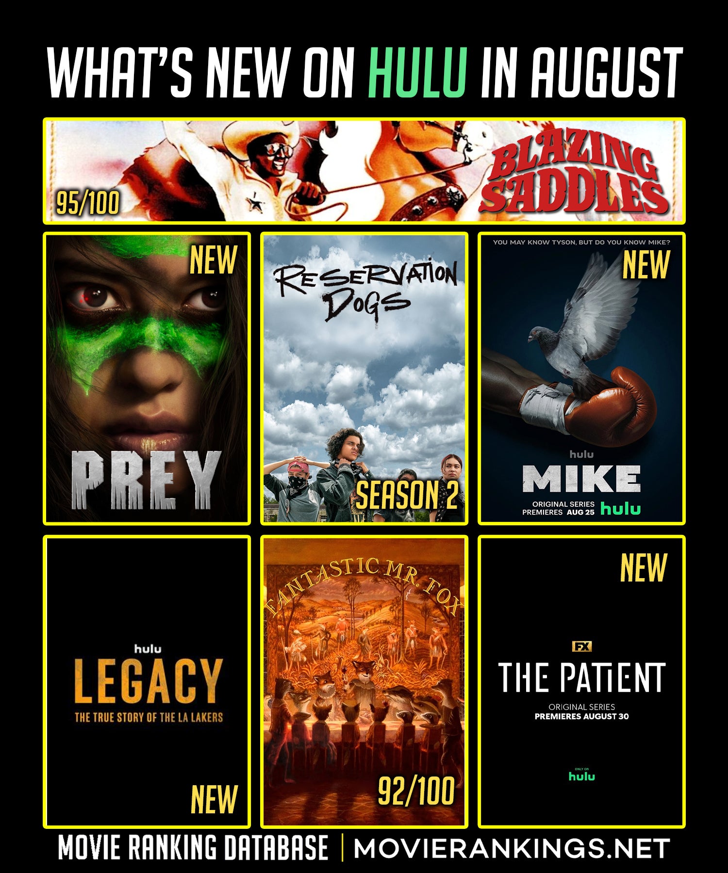 August 5th: Prey(I watched this a few days ago and it rocks. Easily the best Predator movie since the original)