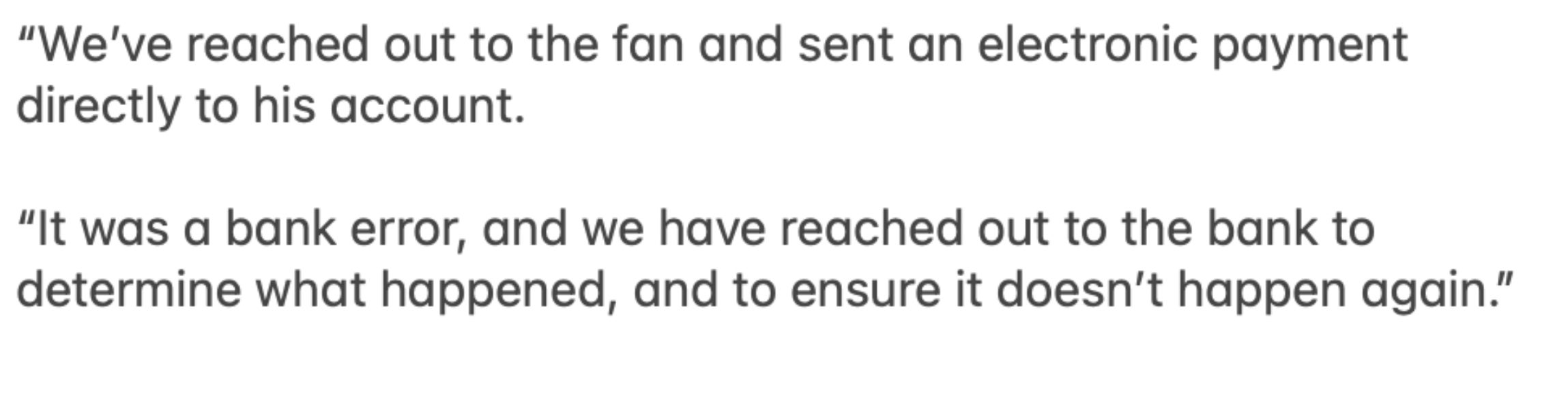You see, nothing in Washington can ever be easy. Even simple mistakes like this have simple answers, right? Wrong. Because nothing, and I mean NOTHING, is ever the organization's fault. Just like Snyder coming out yesterday and saying every single thing in the ESPN report is a lie, the Commanders organization can do no wrong. This $14k bouncing? The banks fault, of course!