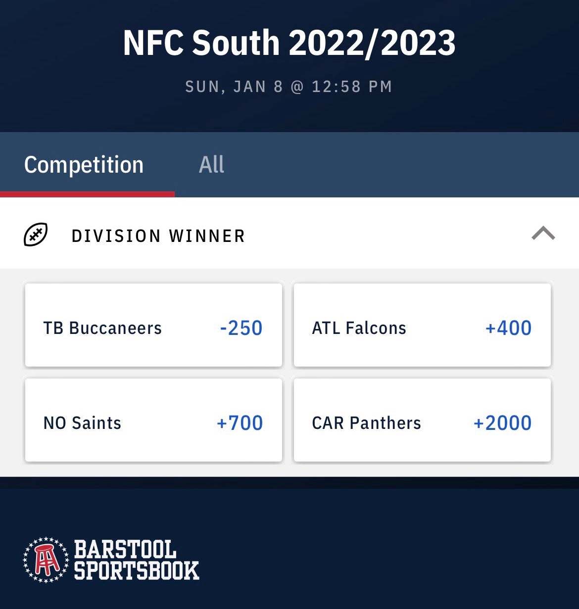 Now this division is so bad that The Bucs might just be the least stinky pile of shit in the stack and still stumble to 9-8 or hell 8-9 and win this division. The Barstool Sportsbook thinks this division is so bad, that the Bucs are still -250 to win the NFC South. That should tell you the confidence they have in the Falcons, Saints and Panthers.