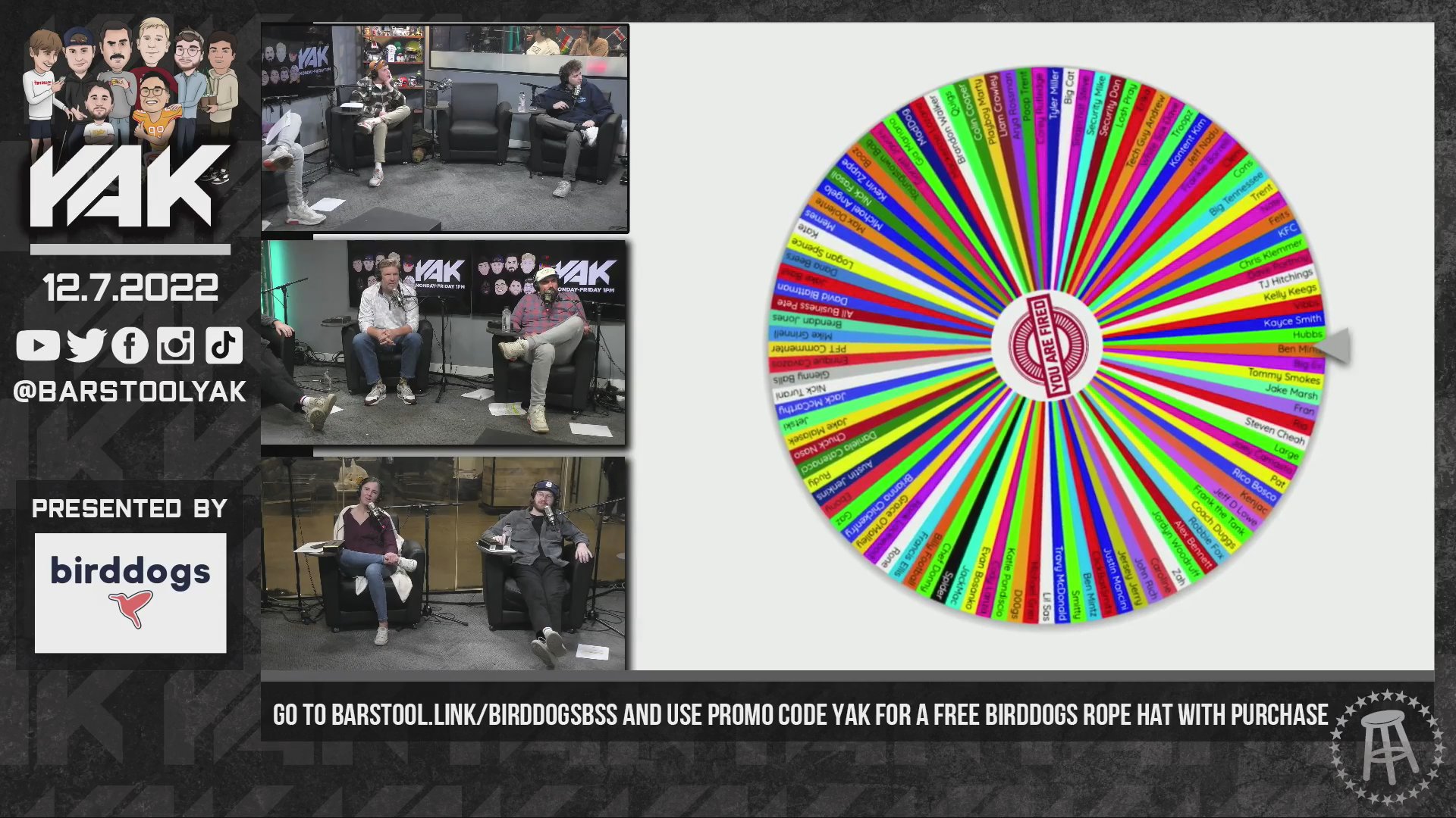Out of those five names, we'd whittle it down to two to do a best of seven. And with an all-time Wheel is Just final, but who is it? You'll have to check out the full show to see who got canned and be sure to subscribe to the Barstool Yak YouTube channel.