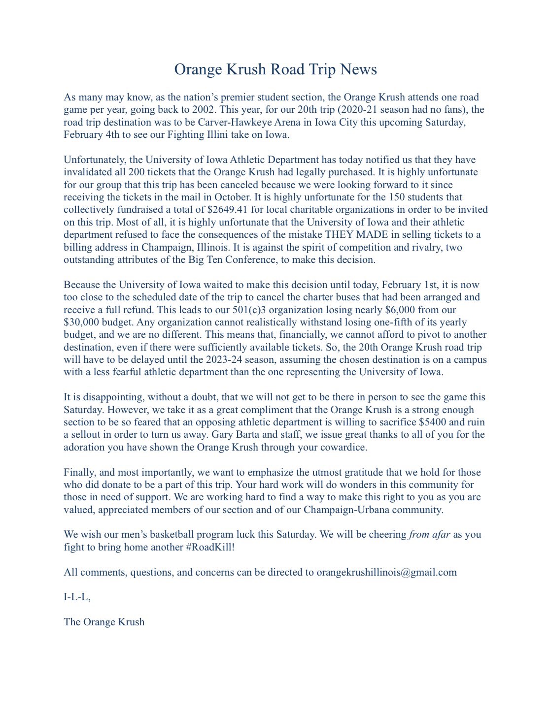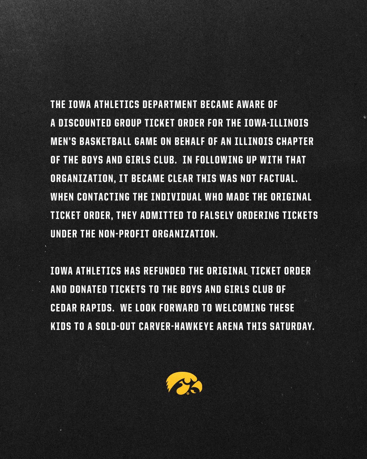 Iowa Brought Out The Boys And Girls Club On The Court To Emphasize Illinois Fans Were Scumbags Trying To Buy Tickets To The Game Posing As The Girls And Boys ClubMarty Mush2/04/2023 9:10 PMFacebook Icon19illinois+ 3 TagsMarty Mush2/04/2023 9:10 PMFacebook Icon19