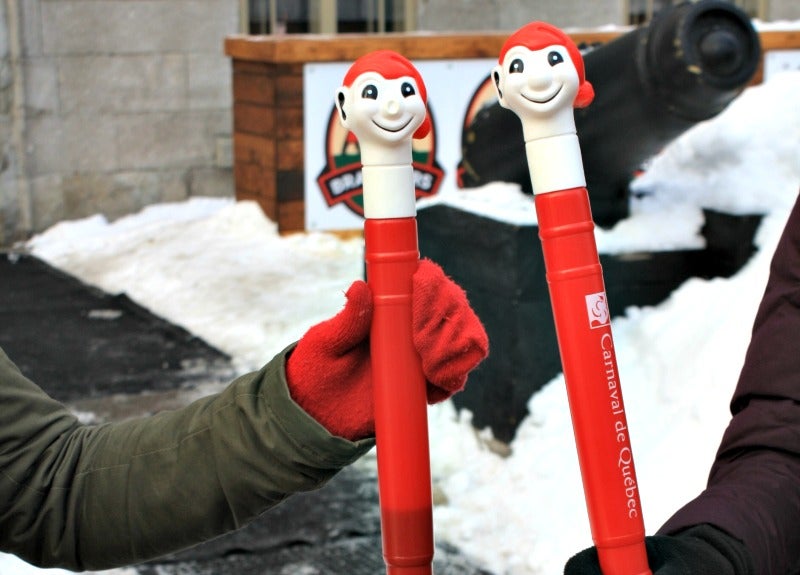 The snowman’s name on the top is Bonhomme and he is the official mascot for the Winter Carnival, one of these is a must. “C’mon Murls! we’re not that old we can walk around town without a stick”, no no the key is the top pops off and you fill it with booze. The booze of choice in Quebec this week will be Caribou, a warm wine and booze mix that is served warm around the streets.