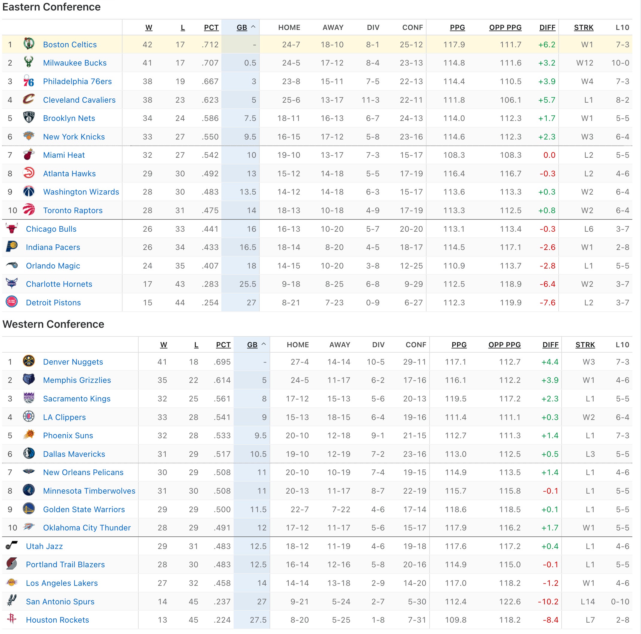 For the Celts, they have a similar delicate balance when it comes to rest/seeding. While they were fortunate enough to win huge road playoff games last year, including a Game 7, I'm of the thought that having homecourt for as long as you can should be the goal. They don't have the hardest schedule but it isn't exactly a cakewalk either, and I think every Celts fan wants there to be some built in rest days for the two best players. The easiest way to do that is to create some separation in the race for the 1 seed. With Giannis being out, ths is a great opportunity for the Celts to pounce and get that space that could be valuable in about a month.