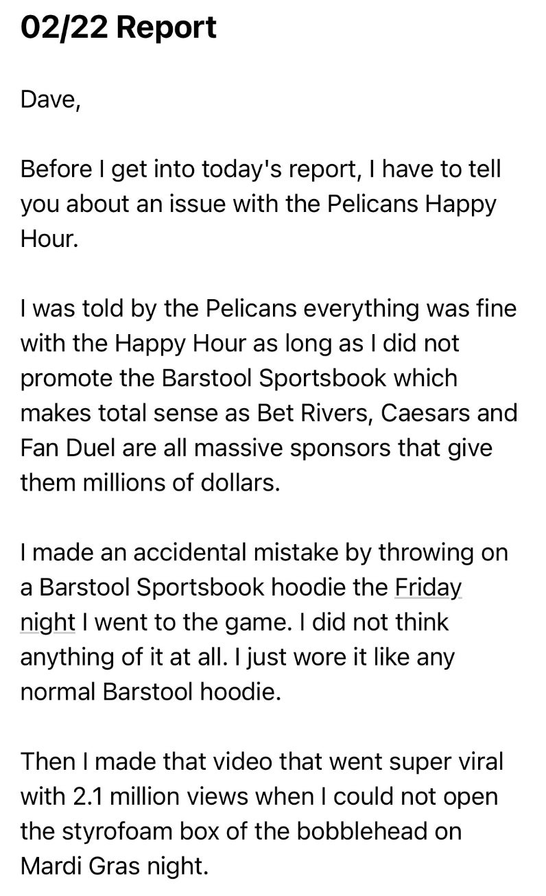 If You Were Planning On Attending The Most Anticipated Theme Night In NBA History (Barstool Pelicans Night) Here's 10 Sweatshirts You Can WearRico Bosco2/23/2023 5:00 PMFacebook Icon18barstool+ 3 TagsRico Bosco2/23/2023 5:00 PMFacebook Icon18