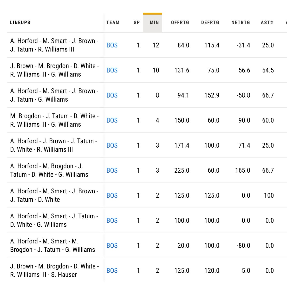 Brogon/White/Tatum/Grant/Al: +165 net rating