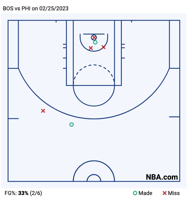 On the perimeter, you're seeing lineups where George Niang has to try and guard Jaylen Brown. That's just not fair for Niang. Jaylen is too quick and too strong once he gets his shoulders past you. Tobias Harris can't do it, PJ Tucker can't do it, and Melton is too small for either Jay. It's no accident that outside of the game where Jaylen had to leave because he broke his face, he's dominated this PHI team.