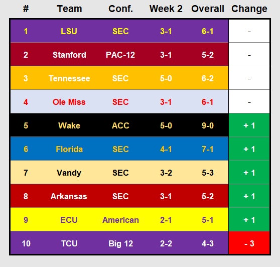 VANDY IS OBJECTIVELY BETTER THAN ARKANSAS THROUGH WEEK 2 BUT NOT NEARLY AS GOOD AS OLE MISS WHO IS BETTER THAN FLORIDA BUT WORSE THAN OLE MISS