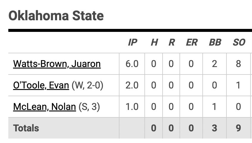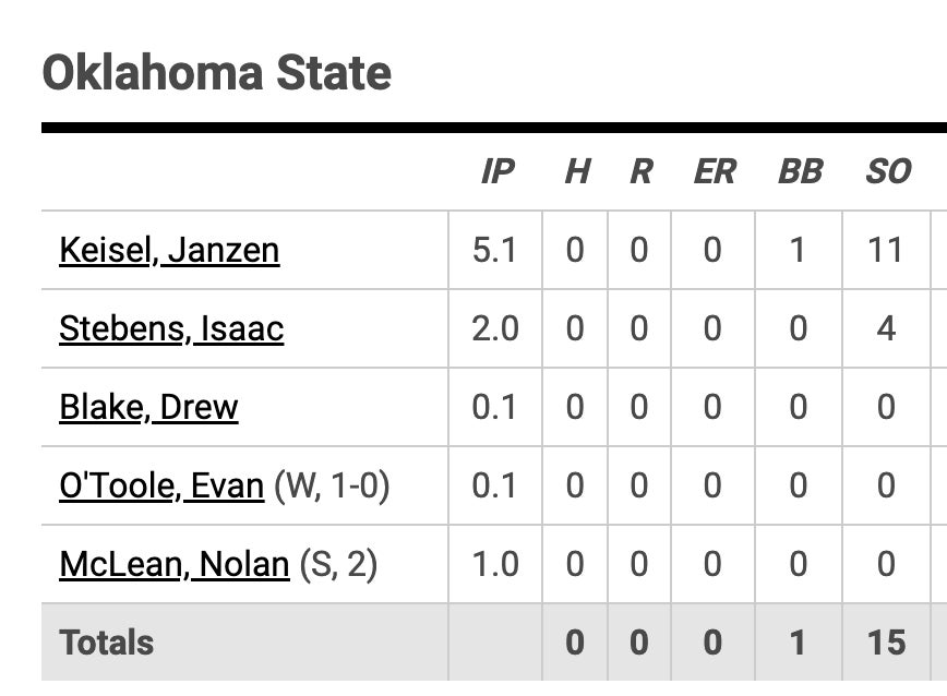 Oklahoma State threw BACK TO BACK staff no hitters. It started on Tuesday and rolled into their Friday night and I can't stop thinking about the 0 hits, 4 walks and 24 strikeouts in 18 innings.