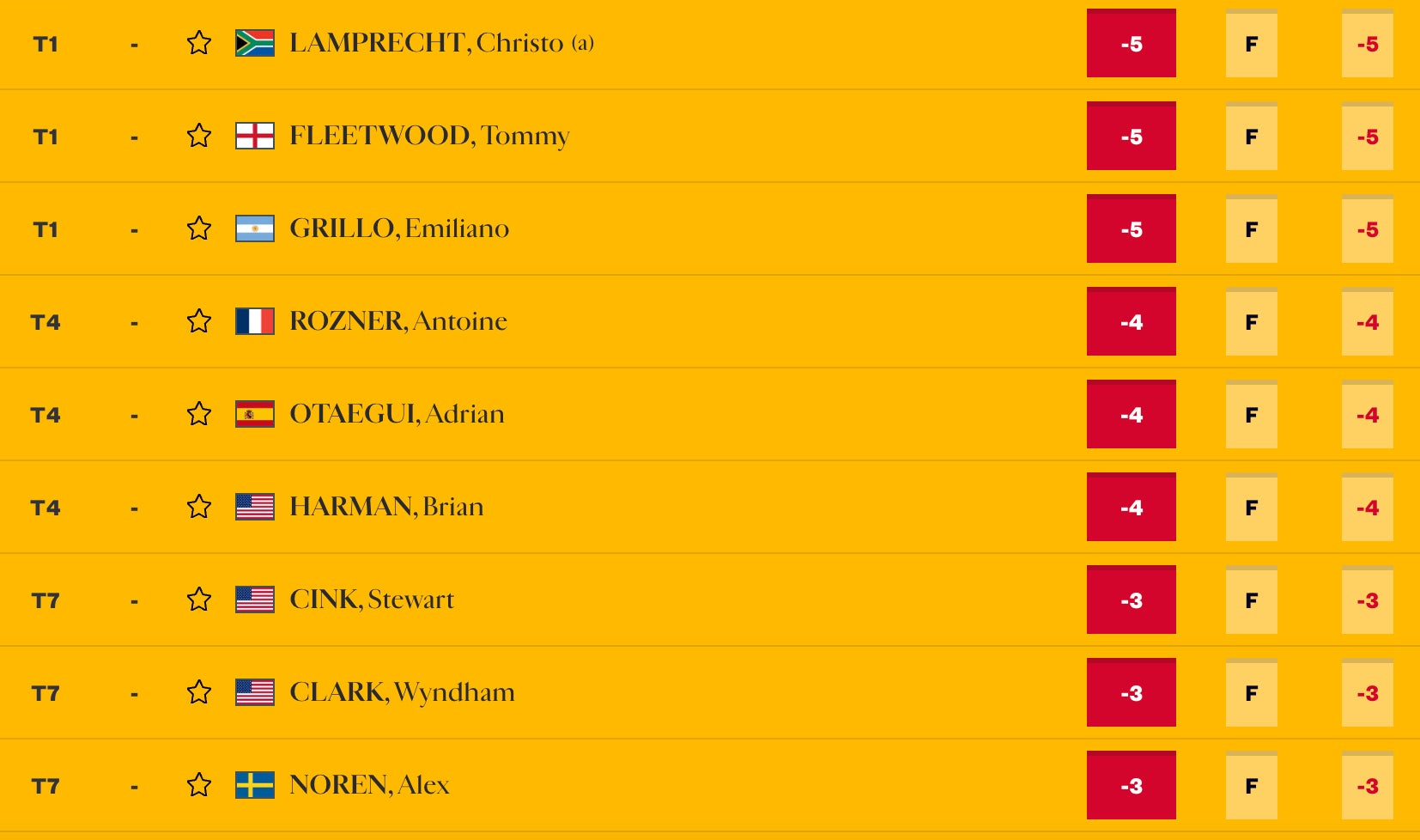 Lamprecht also played early in the morning and while there are no "waves" at the Open—like the Masters, all players tee off on hole 1, which is different from the U.S. Open and PGA Championship, where guys go off 1 and 10 in the opening rounds—the guys who played earlier look like they're getting the good side of the draw. The wind picked up on Thursday afternoon and the course played a full shot harder, and the weather looks dicey on Friday morning.
