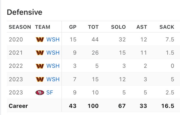Here's the thing about Chase Young- if he wanted to, he could be an absolute force in the league. The problem is he doesn't want to be. He has no interest in putting in the work or the effort. He has been the best at football since he was 7 years old and has never had to do more than the minimum effort to be the best. Just one of those freak athletes who has every physical tool in the world. And now that he's in the NFL, the pinnacle of his profession, he can't be bothered to put in the effort needed to maintain being the best.