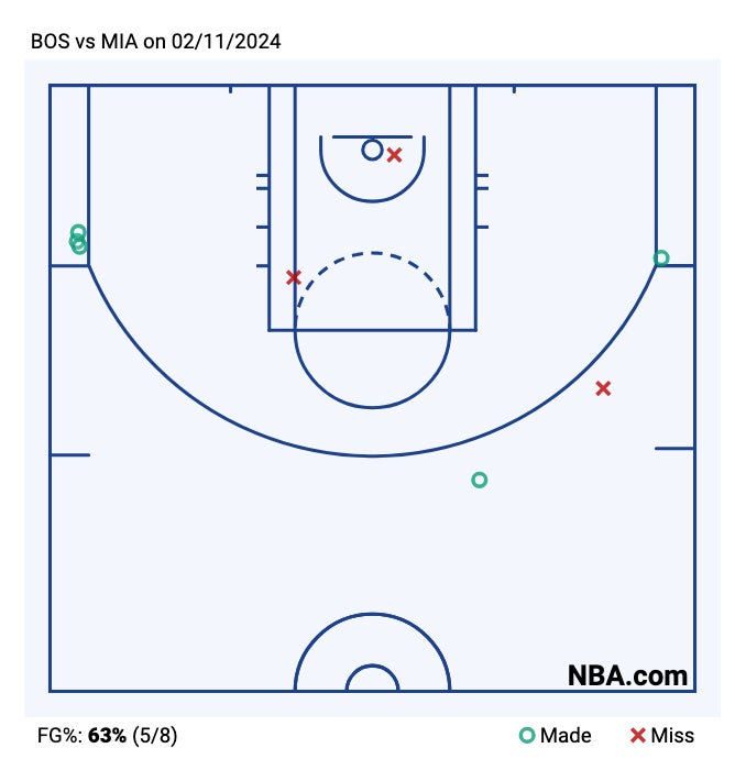 A pretty good 5-6 from deep, that also went with 6 assists, 1 block and 1 steal and only 1 TO in his 35 minutes, so I think it's fair to suggest that part of the reason things may feel different this time around against MIA is the fact that the Celts two additions have been incredible in this matchup.