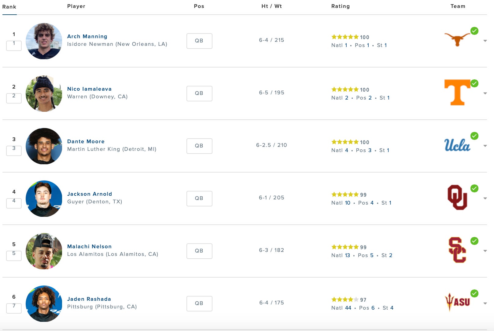 The quarterback on the other side, by the way, is fellow 2023 five-star Malachi Nelson, now at his third school after stops at USC and Boise State. And though Nelson did actually manage a much higher QBR against the Texas defense than Manning had against UTEP's, his career obviously hasn't gone according to plan. Dante Moore looks great and the jury is still out on Jackson Arnold, but a quarterback class that featured Manning, Nelson, Nico Iamaleava and Jaden Rashada at the top sets the recruiting industry back a decade.
