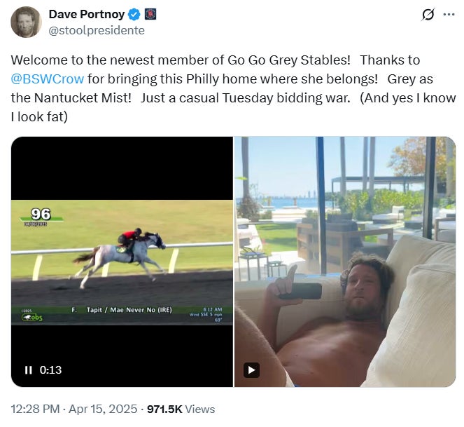 So good for Dave. I’m on record as saying that when he starts running his new Go Go Grey horses (next year?), it will be a big deal for racing. The number of fans at the Barstool Travers Day Show was wild - plus the thousands watching on stream all day. His fans will support the Go Go Grey runners when they hit the track.