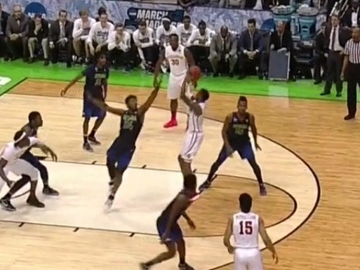 Strengths: The biggest strength for Monte Morris isn’t going to surprise anyone. He can step in, play right away and be a guy who can take care of the ball and set up his teammates. He’s excellent in the pick-and-roll as he was in 358 PnR sets this year and ranked 84th nationally as Iowa State scored 1 point per possession. Watching him play as the passer in the PnR – which I want to focus on first – you notice a couple things. First, he dictates the screen and what I mean by that is he waits for the big to get set and knows when to push the tempo a little bit to the screen and when to use his hesitation dribble to set up the roll. From there he has an arsenal of passes to get to the roll man. He’ll beat you with a chest pass, bounce pass, has great touch of lobs and can swing to a spot up shooter. It’s honestly my favorite thing about his game – the different types of passes he can make. Here you’ll see three examples, two bounce passes to get his teammates going to the rim and a diagonal pass coming off the screen leading to a layup.