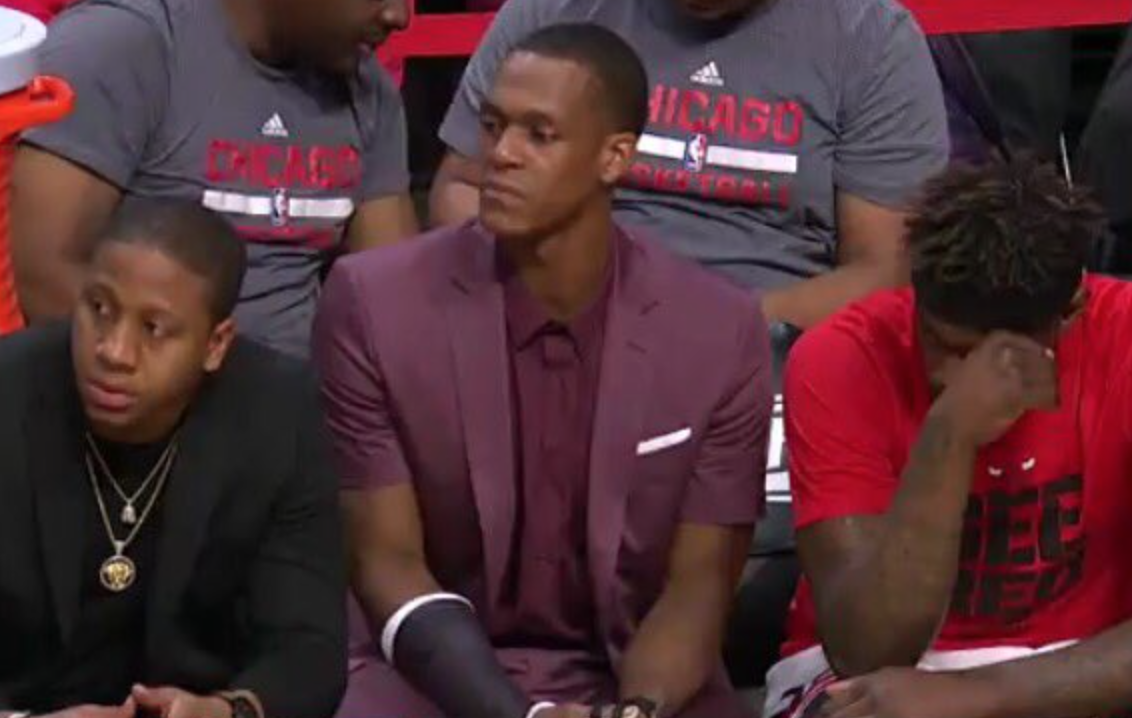 Go back to late January, when the Bulls were mired in absolute shit and everything seemed to be falling apart. We had the instagram war between Rondo and Wade/Butler and there were legitimate rumors that Rondo would be waived. Not traded, just straight up waived. Now flash forward to last night, not only is it apparent Rondo was very important to this team (running the offense, rebounding, helping QB the defense) but he also gives us the funniest Bulls moment in a long time. Trying to trip an opponent is a lame move, unless you don’t even really deny it. Then it becomes hilarious. So his leg got stiff and he needed to stretch right when a Celtic was directly in front of him. You ever tear your ACL? Ok, then you wouldn’t understand. Sorry, when you’re rocking a short sleeve suit, you get to do whatever you want. Those are the rules.